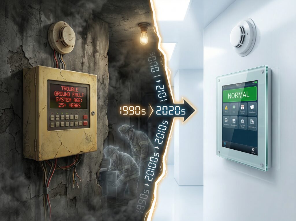 Fire alarm systems typically protect buildings for 15-25 years before transitioning from protection to liability. Recognizing warning signs early allows property managers to plan proactive replacement instead of emergency replacement after catastrophic failure. Indicators include system age exceeding 15 years, chronic trouble conditions, unavailable parts, increasing false alarms, and poor device supervision. When multiple signs are present, replacement is recommended. Proactive replacement costs significantly less than emergency replacement, ensuring reliable life safety protection.