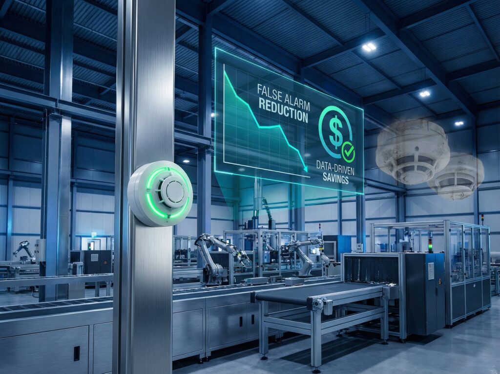 A factory reduced false fire alarms by 60% in 90 days, saving $28,200 annually. The problem, costing $47,000 yearly in fines and downtime, stemmed from moisture, dust, and temperature fluctuations. The solution involved a data-driven approach, targeted upgrades (replacing 48 ionization detectors with multi-sensor types), environmental controls (HVAC dehumidification and dust collection), and establishing strict maintenance protocols. The total investment of $14,200 had a six-month payback period.