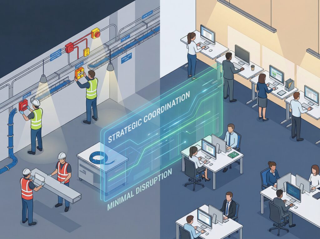 Fire alarm installations disrupt business operations, but planning approach, not installation speed, minimizes downtime. A standard installation for a 15,000 square foot office building might cause 6-8 days of disruption. A strategic approach—using phased installation and off-hours scheduling—might increase total installation time (10-14 days) but drastically reduce business disruption to 3-4 days. This smarter sequencing minimizes operational impact, resulting in a 45-50% reduction in downtime. Installation timing matters more than speed.