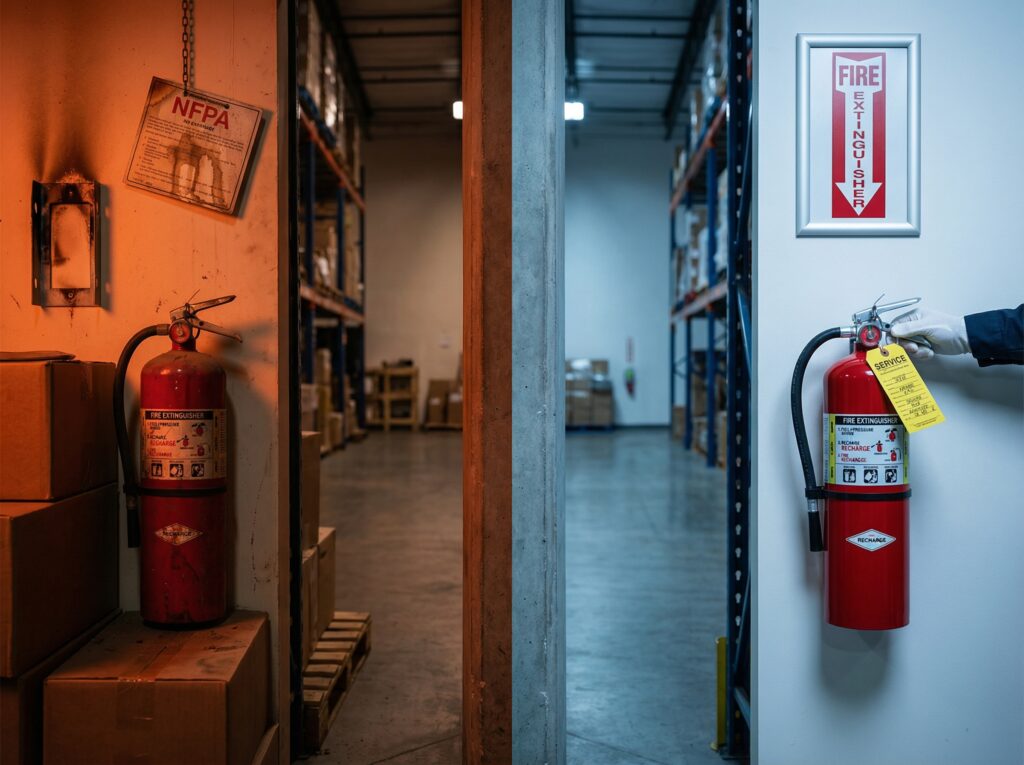 In multi-tenant buildings, who ensures every space has the right extinguishers, placed correctly, and maintained to code—before a costly disaster strikes?