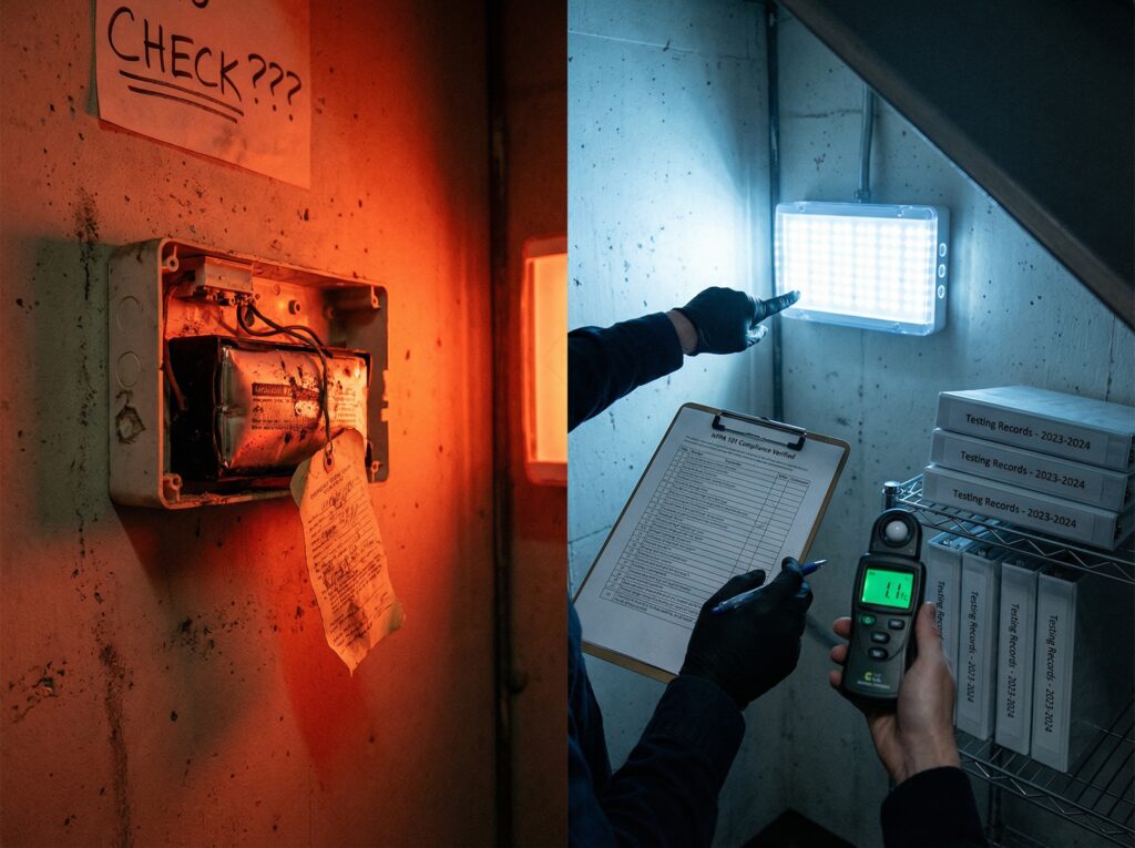 Emergency exit lighting success requires a proactive approach, moving beyond reactive testing. The First-Try Success Framework involves systematic 90-day preparation. Key steps include a Pre-Test Baseline Assessment (inventory, historical review), Systematic Monthly Verification (enhanced testing), and Proactive Deficiency Correction, such as replacing marginal batteries and lamps beforehand. Strategic Test Scheduling is also vital. This preventative method minimizes the risk of failure, resulting in immediate certification, which saves facilities 2-4 weeks in time and over $1,000 in potential re-testing costs compared to a reactive approach.