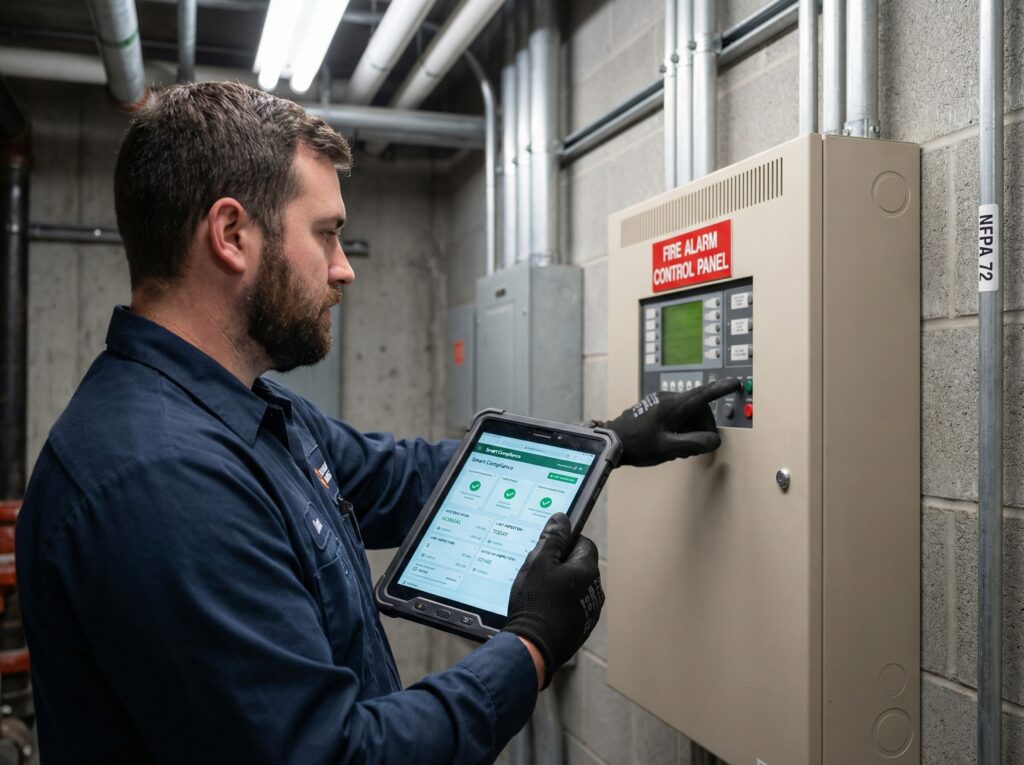 A midsize hospital receives the yearly fire alarm inspection report flagging unresponsive initiating devices and outdated firmware, raising regulatory concerns.
