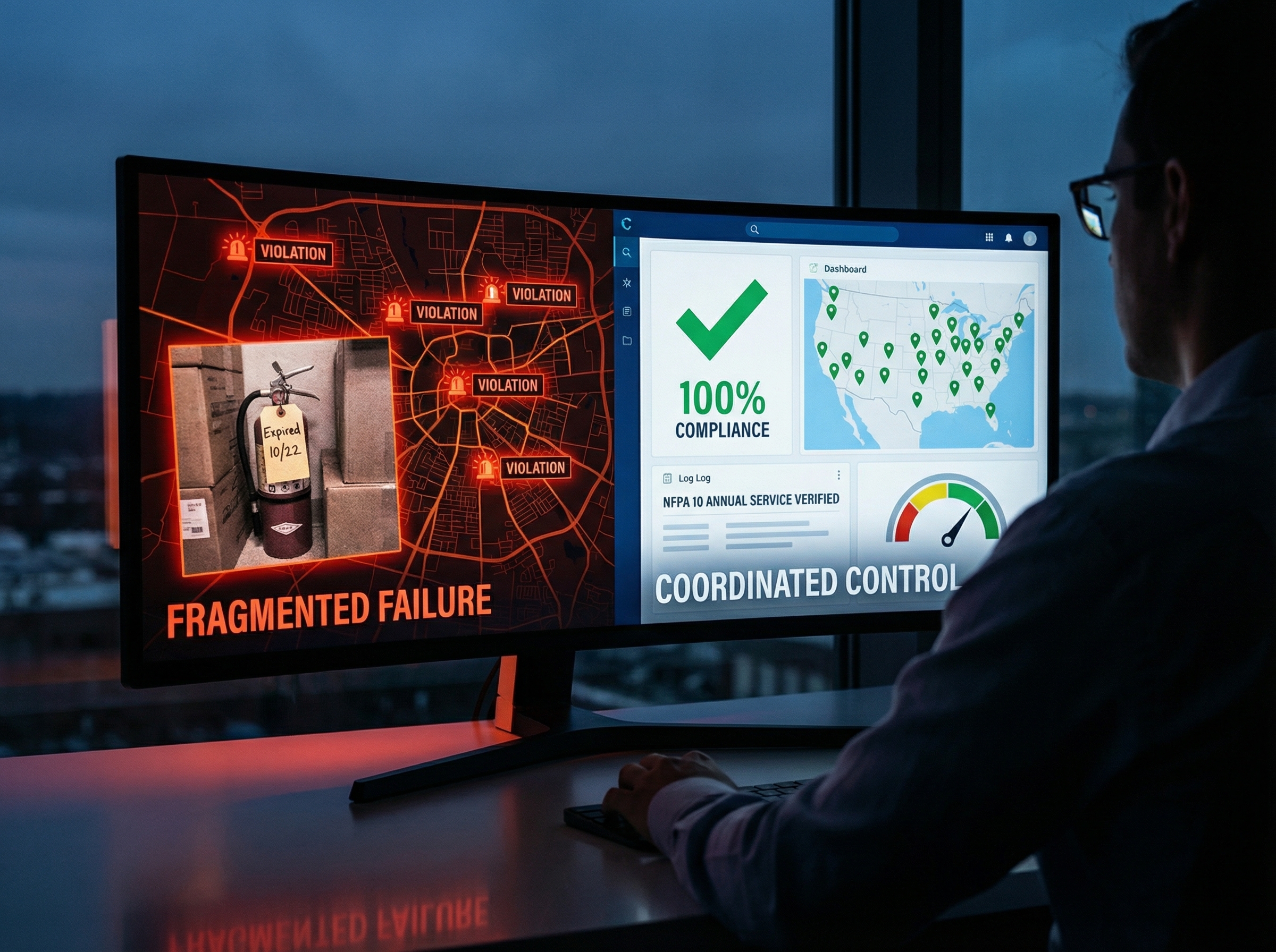 This wasn’t a facilities management failure. The stores were maintaining equipment—but without coordinated oversight across locations, compliance gaps accumulated. Purchasing managers bought extinguishers independently. Store managers tracked maintenance differently. Documentation was scattered across locations and vendors. When fire marshal inspections came, the organization discovered it had 18 stores failing compliance from problems that were fixable.