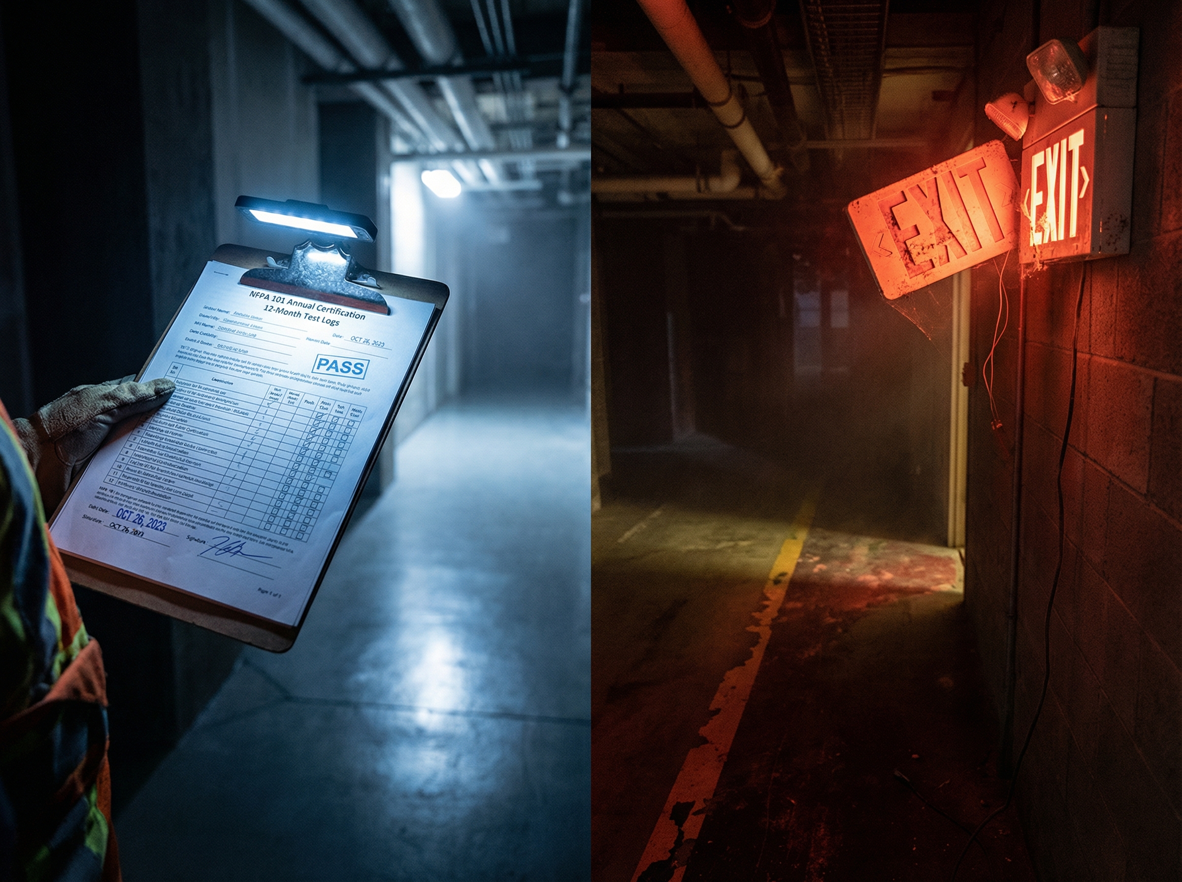 This article documents the 8 elements fire marshals systematically verify during emergency lighting certification inspections.