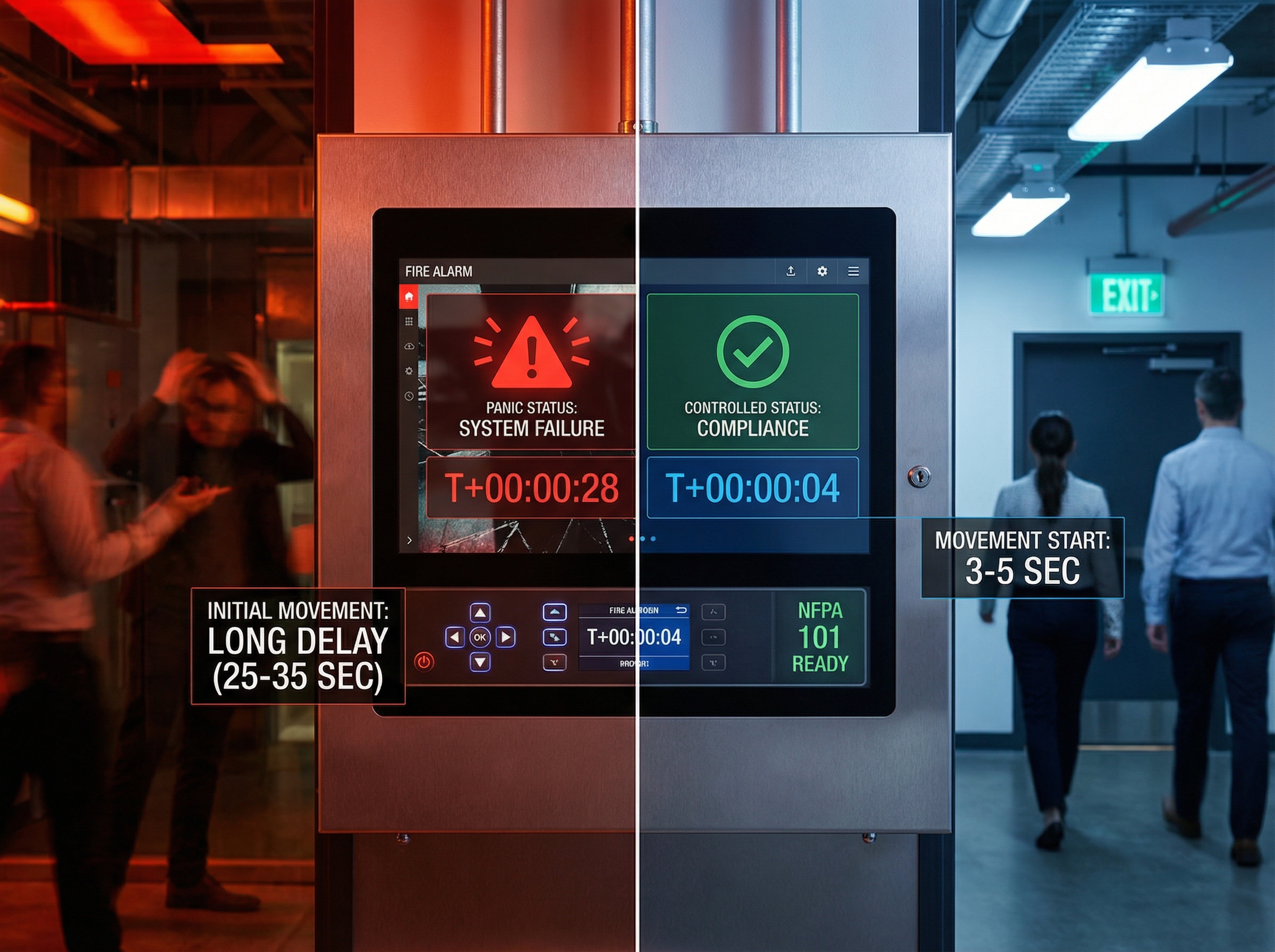 In a real fire emergency, 22-30 seconds per occupant is the difference between controlled evacuation and panic. It’s the difference between orderly flow and bottlenecks. It’s the difference between occupants reaching exits while routes are clear versus reaching exits as conditions deteriorate.